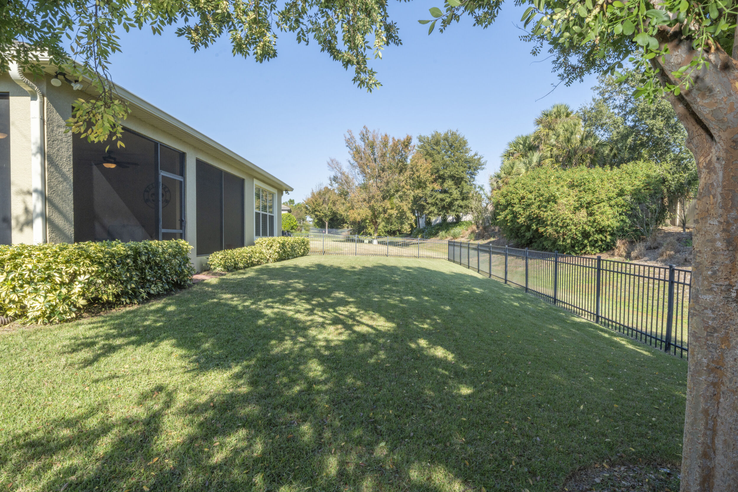 Enjoy the beautiful Florida weather in the huge screened room, which seamlessly blends indoor and outdoor living. The property also showcases beautiful, mature landscaping that adds charm and privacy.